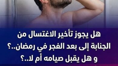 حكم تأخير الاغتـ ـسال من الجـ ـنابة فى رمضان إلى بعد الفجر