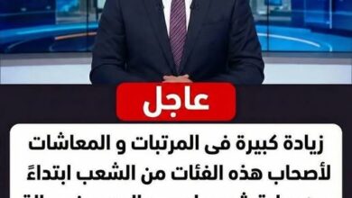 عاجل زيادة كبيرة فى المرتبات و المعاشات لأصحاب هذه الفئات من الشعب ابتداءً من بداية شهر مارس، فى خطوة انتظرها…
