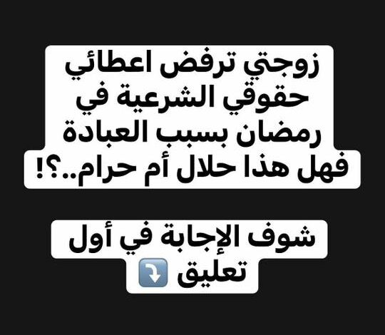 زوجتي ترفض إعطا،ئي حقوقي الشرعية في رمضان بسبب العبادة… فهل هذا حلال أم حرام؟