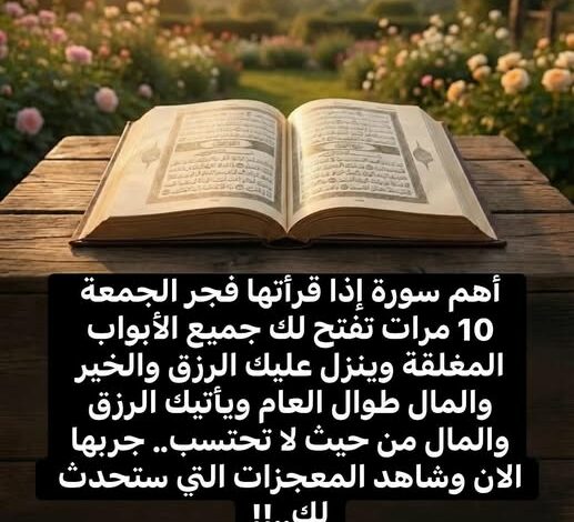 اهم سورة إذا قرأتها فى يوم الجمعة تفتح لك جميع الابواب المغلقة و ينزل عليك الرزق طوال العام