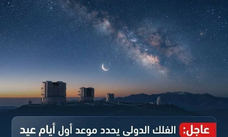 الفلك الدولى يحدد موعد أول أيام عيد الفطر المبارك
