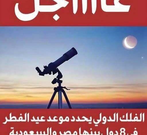 عاجل الفلك الدولى يحدد موعد أول أيام عيد الفطر المبارك فى مصر و الجزائر و سوريا و الأردن و لبنان و السعودية و 10 دول أخرى