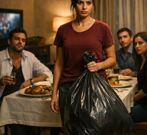 بعد الطبق، خدت الكوباية الكريستال اللي بيحبها ورميتها في الكيس. وبعدين إزازة الحاجه الساقعة الغالية اللي كان شايلها للضيوف. الشوكة.. المنديل القماش.. كل حاجة لمسها على السفرة دي. الضيوف قعدوا مبهورين، والسكينة سرقاهم.