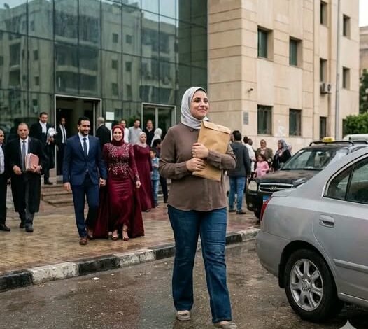نزلت نورا من العربية، ورفضت تمسك الشمسية.. خلت المطر يغسل وشها. وأول ما دخلت ممر المحكمة، شافتهم.. عمر لابس بدلة العريس وكأنه غزا العالم، وشيري جنبه بفستان نبيتي ضيق وطرحة “سواريه” مستفزة، وماشية تتدلع بكعبها اللي بيخربش في هيبة المكان.