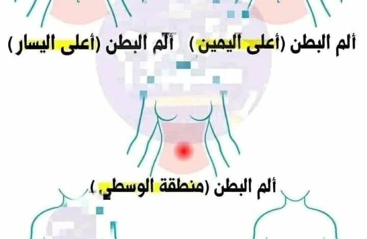 ألـ,ـم البطن ( أعلى اليمين ) : الكبد، المرارة، الكلى