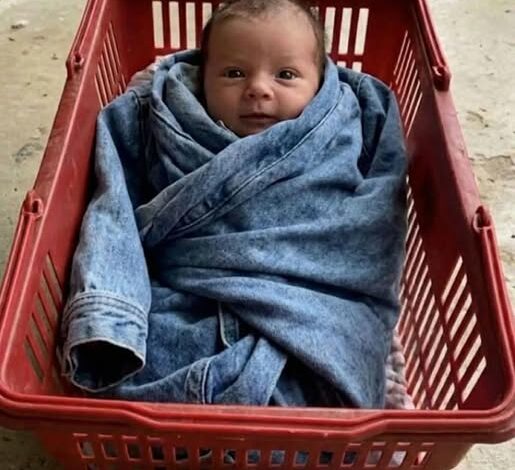كان في طفل رضيع قدام بابي. صغير جدًا، محطوط جوه قفص بلاستيك زي بتاع السوبر ماركت. ملفوف كويس في جاكيت أنا عرفاه كويس جدًا.