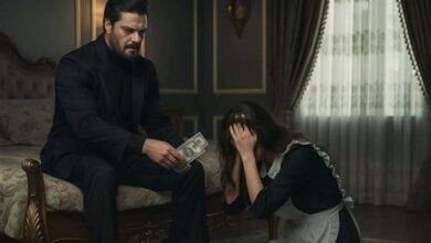 زينب بإبتسامة ل رامي انت مصدق ان دي قصة الخدامه والبيه!
