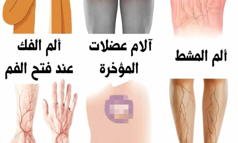 تتضمن الصورة مجموعة من المشكلات الصحية التي تؤثر على جودة الحياة اليومية وتتراوح بين الآلام المفصلية والعضلية إلى المشاكل المتعلقة بالأوردة. يتطلب علاج هذه الحالات فهما لأسبابها واستخدام مقاربات علاجية متعددة تشمل الرعاية الذاتية العلاجات الطبية وفي بعض الأحيان التدخل الجراحي.
