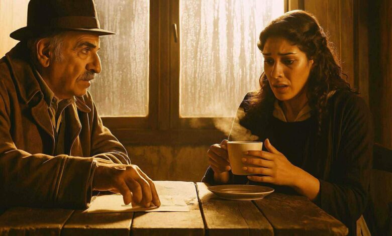 جلسا يشربان الشاي ويأكلان بعض الخبز.