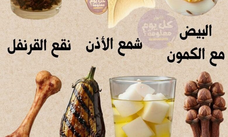 في هذا المقال نستعرض مجموعة من الاستخدامات الشىائعة لمكونات مثل البيض مع الكمون، القرنفل بنقعه أو استخدامه كحبة كاملة، الباذنجان المشوي، شحمة الخروف، عظام الدجاج، بالإضافة إلى سبب تراكم شمع الأذن، مع تقديم شرح علمي مبسط لكل نقطة.
