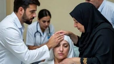 الام وقفت وقربت للمرض وقالت