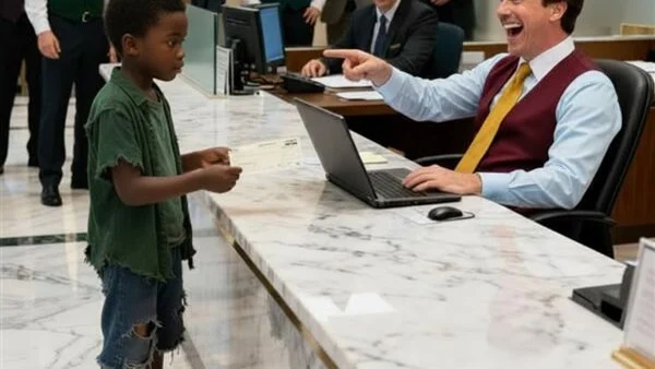 طفل أسود بحذاء مهترئ ذهب إلى البنك للتحقق من حسابه