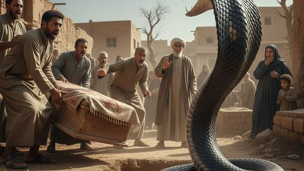 كل ما يفتحوا قبر علشان يدفنوها يلاقوا افعي كوبرا رافعه راسها ومستنيه..لحد ما الشيخ رفع صوته وقالها.