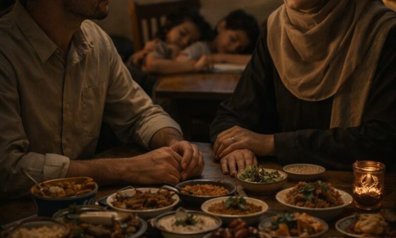 وعدى اليوم والتاني لحد ما جت ليلة تسعة وعشرين تقريبا لقتها عملالي على الفطار أكتر من 20 صنف أكل كل صنف منه طبق صغير لدرجة انها فضلت ست ساعات تعمل في الأكل وقتها بدأ الشك يدخل في نفسي بس مكنتش حابب