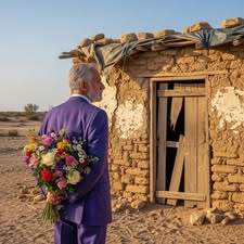 نزل وفي يده باقة زهور اشتراها بدافع مفاجئ من كشك على الطريق. شعر بالسخف. زهور بعد تسع سنوات انتزع هواء السرتاو بتلة من الباقة وقذف بها في الغبار كأنها جواب. ابتلع روبرتو ريقه وطرق الباب.