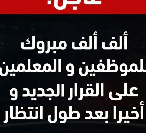 عاجل: ألف ألف مبروك للموظفين و المعلمين على القرار الجديد و أخيرا بعد طول انتظار
